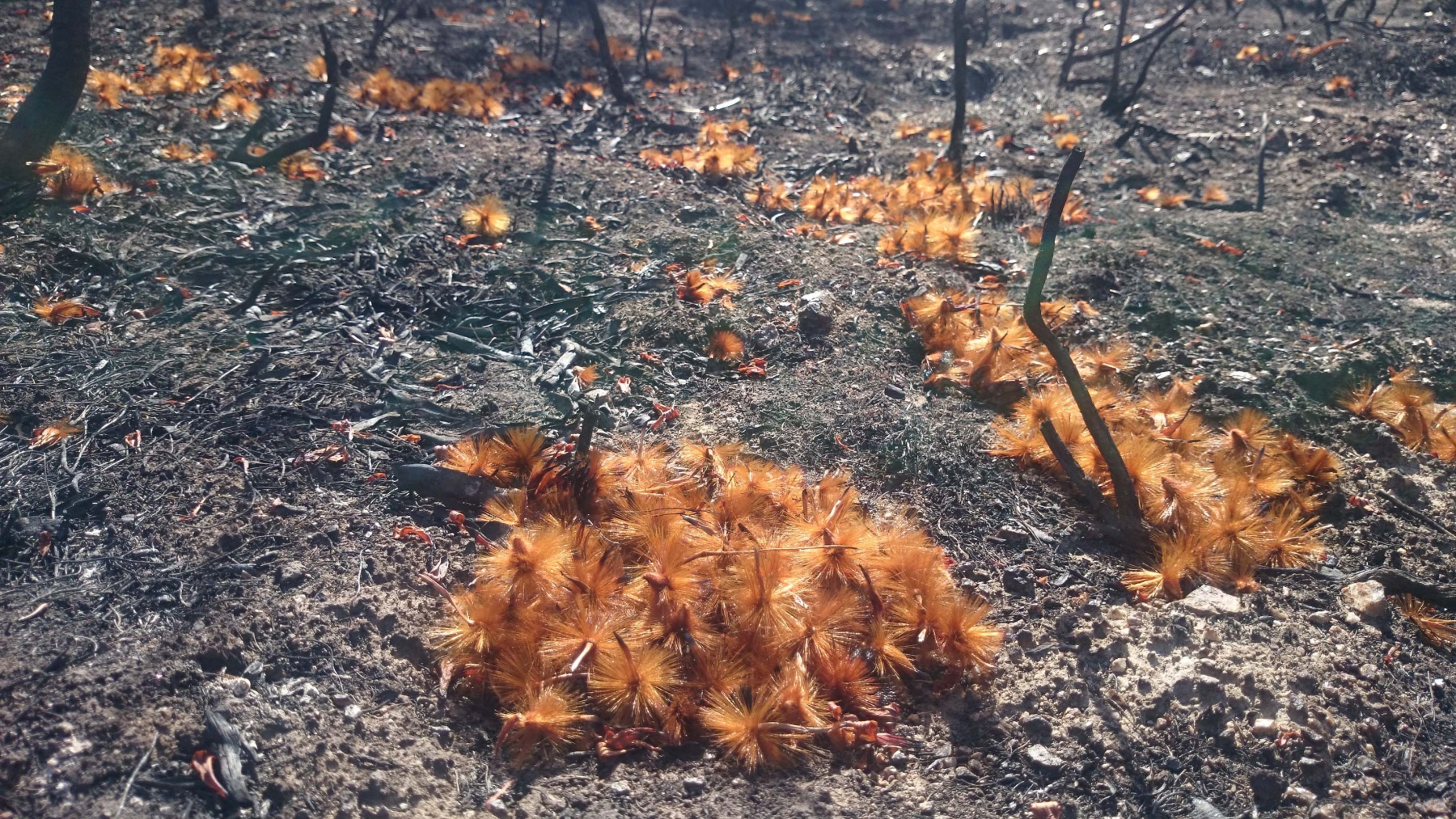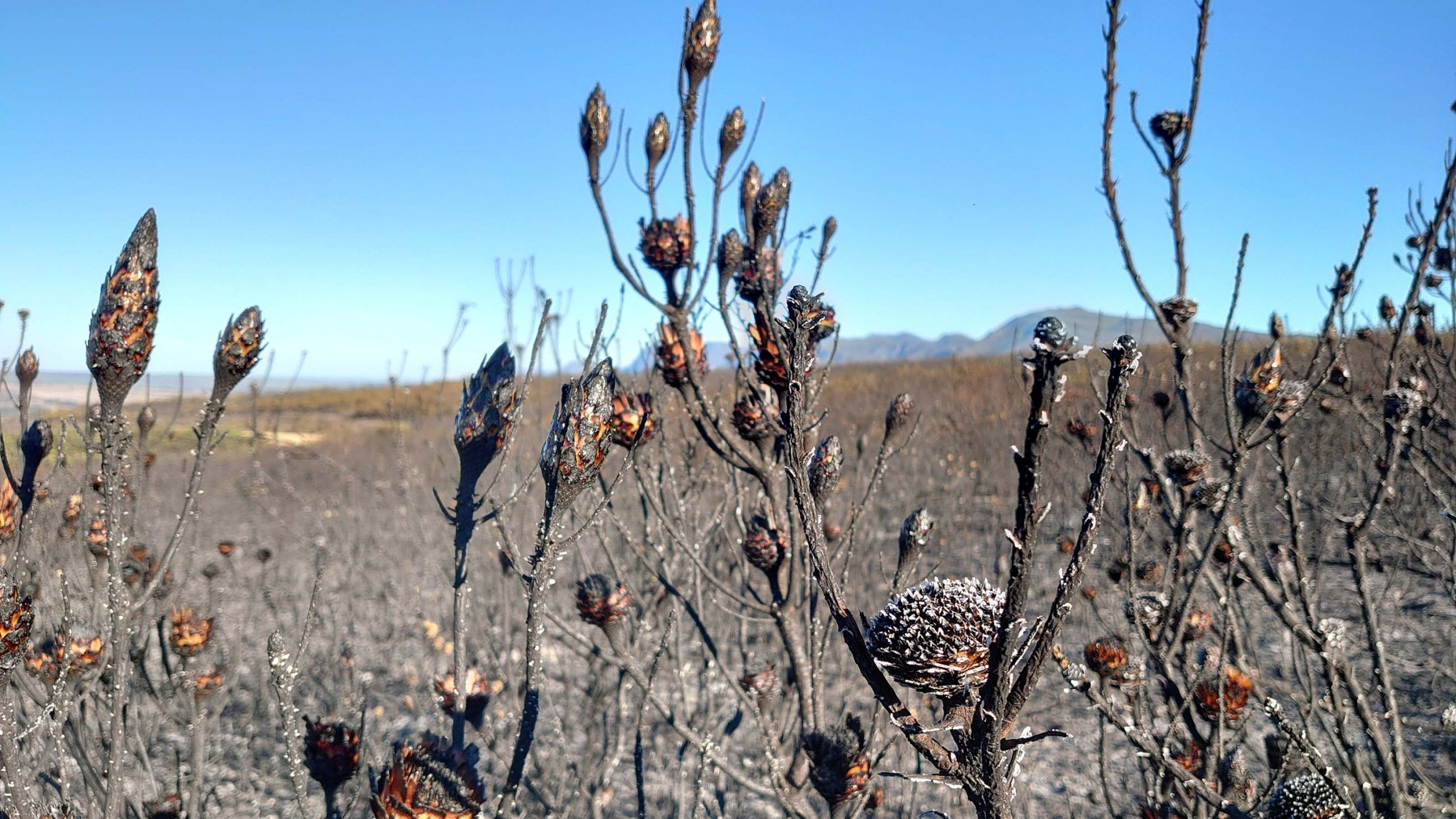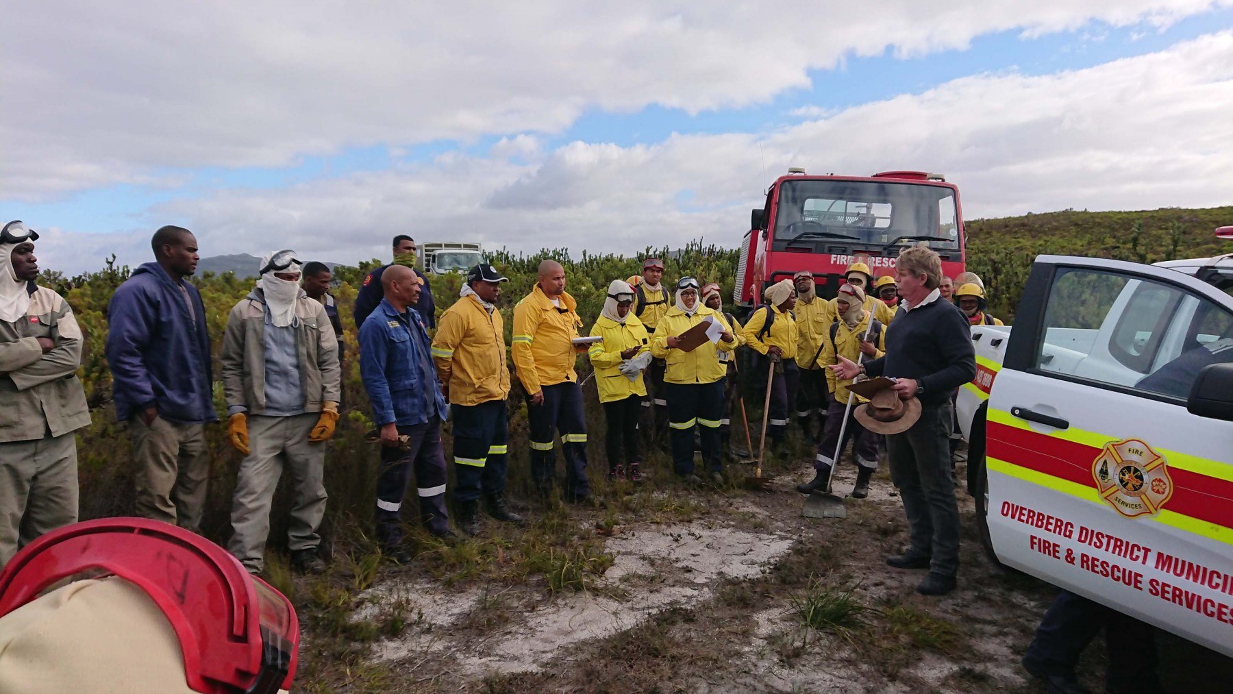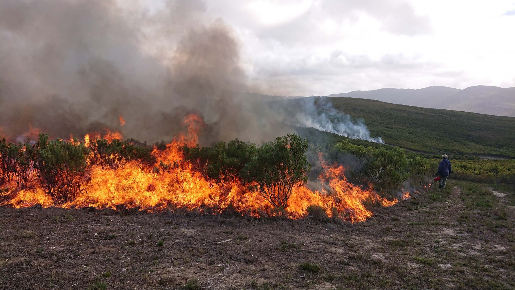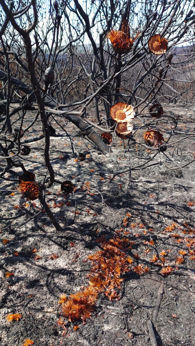 Der FYNBOS muss alle 8 bis 25 Jahre brennen! Daran sind seine Pflanzenarten angepasst und für viele von ihnen bedeutet Feuer der Start einer neuen Generation. Zu häufige „Wild-Fire“ sind schlecht, denn dann sind die Samenbanken noch nicht wieder aufgefüllt, zu selten ist auch nicht gut, denn dann wird die Wartezeit für Knollen und Zwiebeln zu lange. Aus diesem Grund organisieren wir jährlich am Ende des Sommers kontrollierte Brände auf aufwändig vorbereiteten Flächen. Das Wetter mit leichtem aber beständigem Wind muss stimmen, die Mannschaften, die das Burning durchführen müssen gut ausgebildet sein, das Equipment muss passen. Bakkie-Sakkies ermöglichen das Arbeiten mit Wasser, Ground-Teams arbeiten mit Feuerklatschen und Hacken. Es ist jedes Mal spannend und es ist klar: das Feuer kann auch ausbrechen…