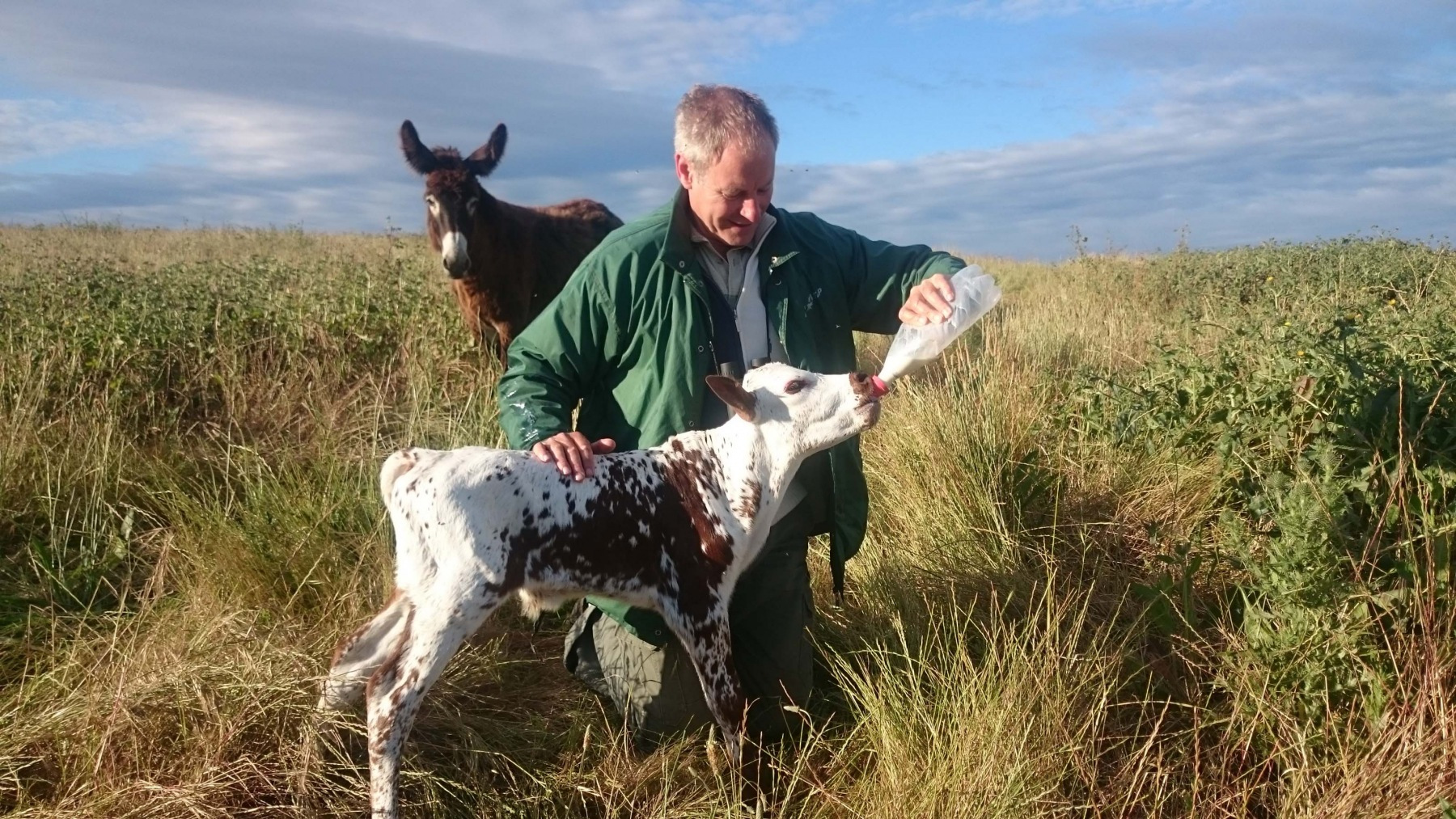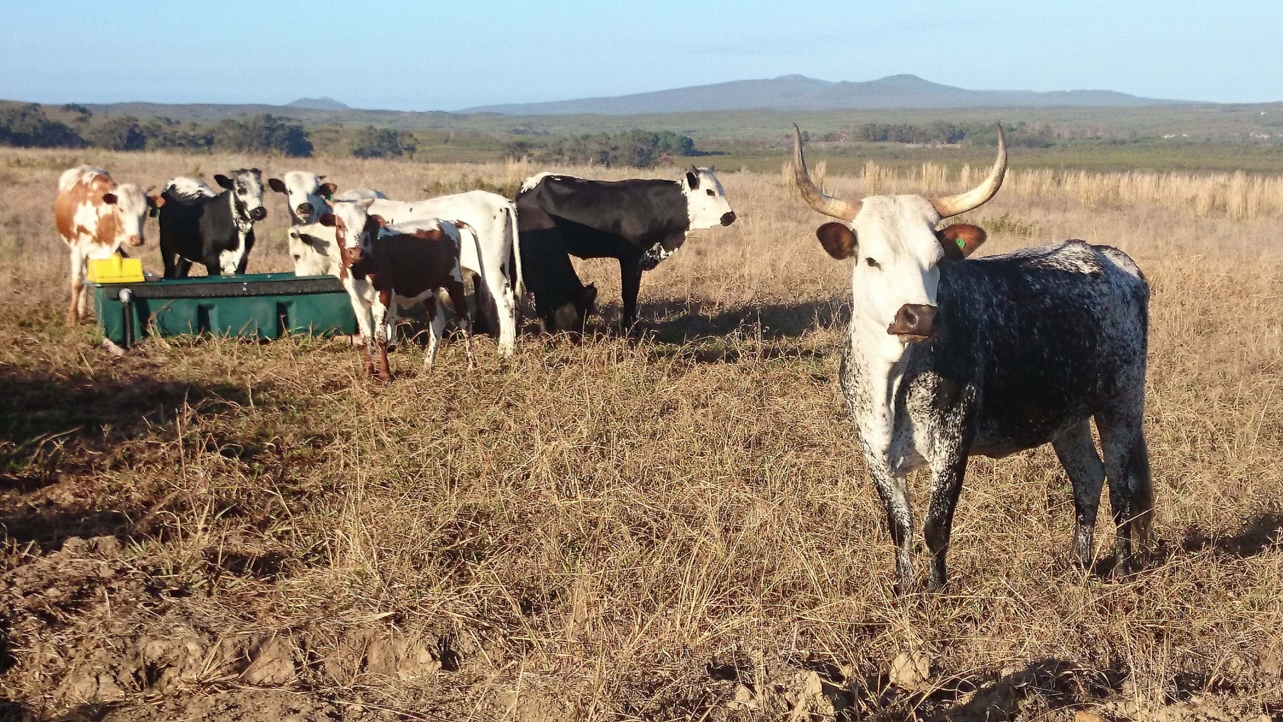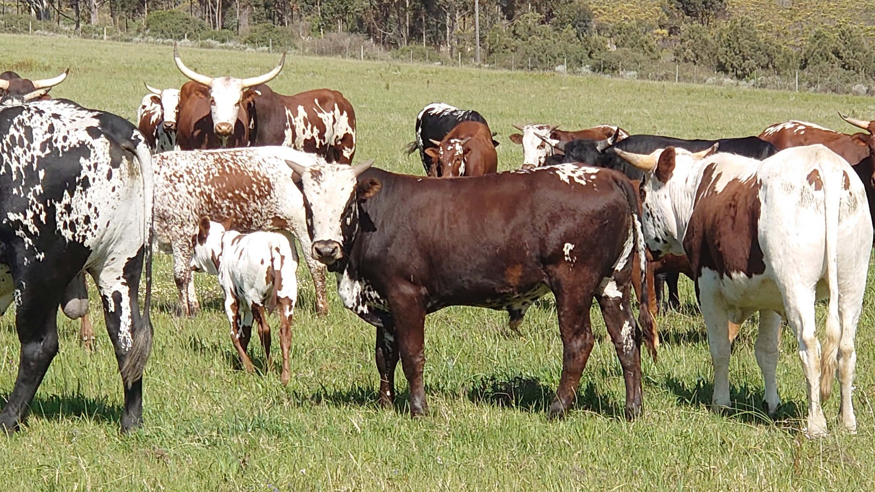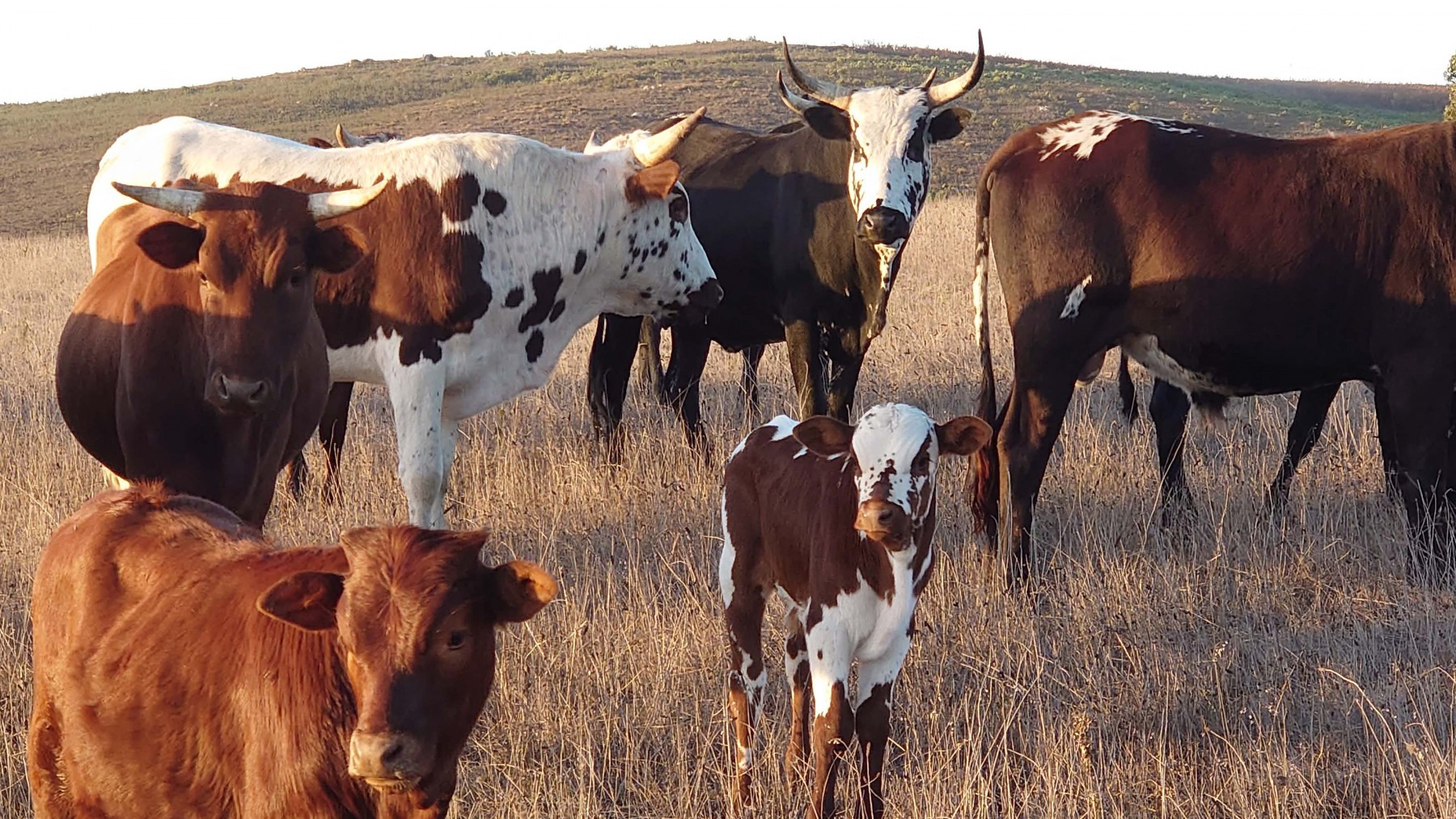 Seit mehreren tausend Jahren lebt diese afrikanische Rinderrasse eng mit Hirtenvölkern zusammen. Sie sind genügsam und robust, beim Kalben brauchen die Kühe keine Hilfe, da sie besonders kleine Kälbchen bekommen. Unsere Zucht startete 2014 mit einem Bullen, 3 Jungkühen und zwei jungen Ochsen: Rump und Ripeye. Inzwischen ist die Herde auf über 30 Tiere angewachsen, obwohl wir mehrere Tiere jedes Jahr schlachten: ohne Transport-Qualen beendet der Jäger auf „humanste Weise“ mit einem einzigen Schuss das friedliche Leben auf der Farm, wo die Rinder ohne jedes Zufüttern „grassfed“ durchaus fett werden.