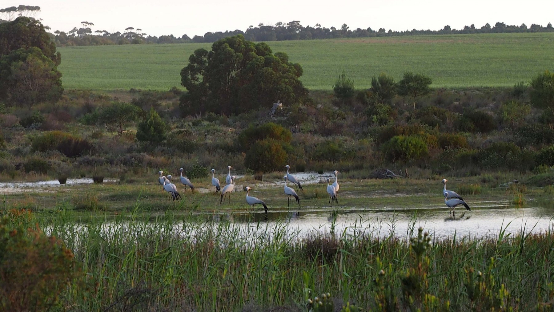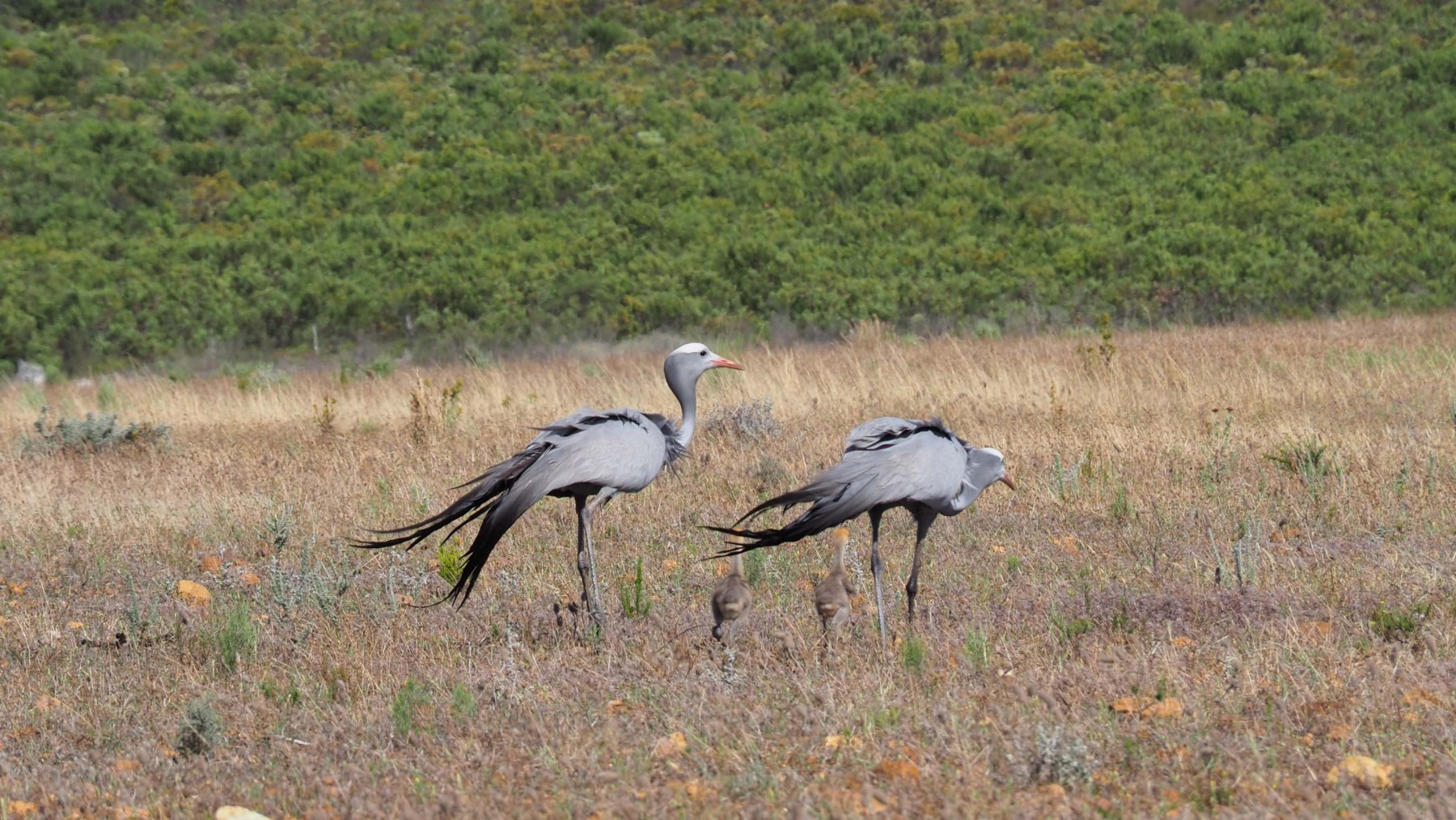Auch die Tierwelt bietet viel Entdeckungs-Potential. Die eleganten Blue-Crane erfreuen in Paaren, manchmal in großen Gruppen. Fast jedes Jahr brüten Paare in der direkten Umgebung der Farm. Die Bontebok-Zucht in der Sugarbird Private Nature Reserve auf unserer Nachbarfarm Lucerne hilft bei der Erhaltung der ehemals beinahe ausgestorbenen Antilopen-Art.