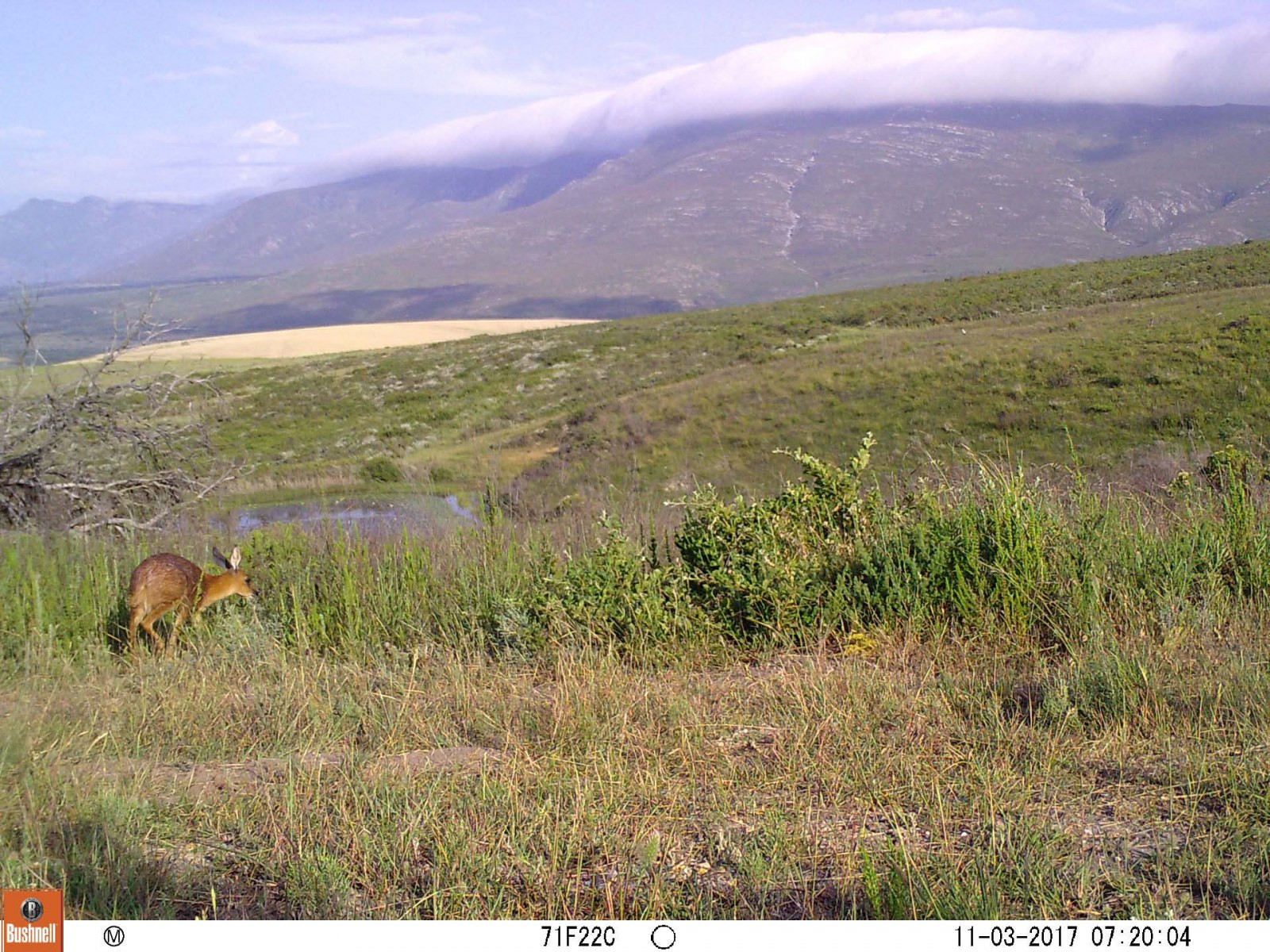 Im Kleinen erfreuen Insekten und die Unerschrockenen können hin und wieder Schlangen bewundern, wenn auch sehr selten! Die ganz scheuen Tiere wie den Caracal, den Wüstenluchs, konnten wir mit Fotofallen überlisten … ebenso den Grey Reebock und den heimlichen Greysbok, beides einheimische Antilopenarten.